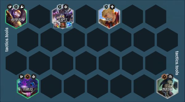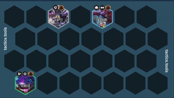 卡萨丁/机器人站位:左右吃钩子,中期无转职7人口机器人通常情况挂在3星玛尔扎哈旁边,钩一个过来挂毒秒掉,传染2个,后期换成蒙多或者卡莎或者斯维因提升上限