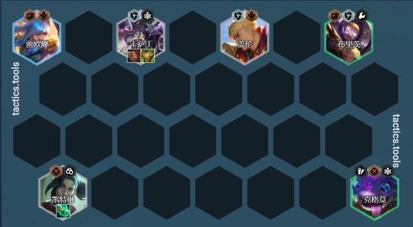 5人口补充机器补充阵容的坦度,这里前期的肉装小嗨建议给卡萨丁搭配使用,卡萨丁在新版本只是削弱了它的技能频率,对于它的坦度并没有太大的影响。而且后期装备也容易给塞恩使用,其他的装备女抢的装备给女警使用(青龙刀),烬的装备给大嘴打工(无尽、破甲、巨杀)