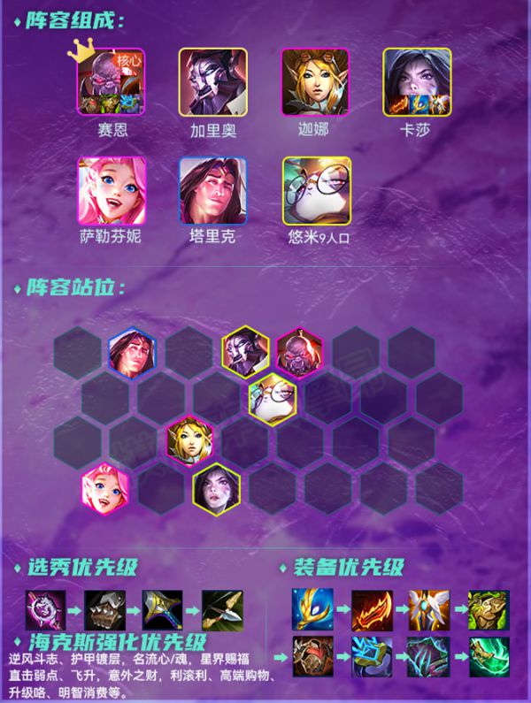 阵容对海克斯强化要求非常低,大部分都能用,最优格斗家/炼金之心/魂,神枪手 泰坦之劲,高端购物等。