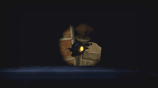 在右侧房间中可以看到一个飞在空中的小机器人,点一下让他在空中转圈,再点一下会让它打开闪光灯。在时机合适时,能看到隐藏在黑暗中的提示。
