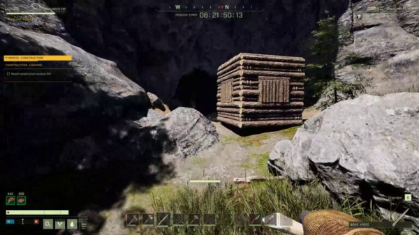 在此任务中我们需要建造一个狩猎用的先遣基地,收集尽可能多的资源和材料,将它们运送到指定的建造区域,组装完成后即可。