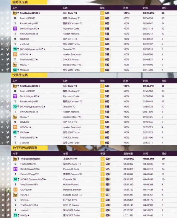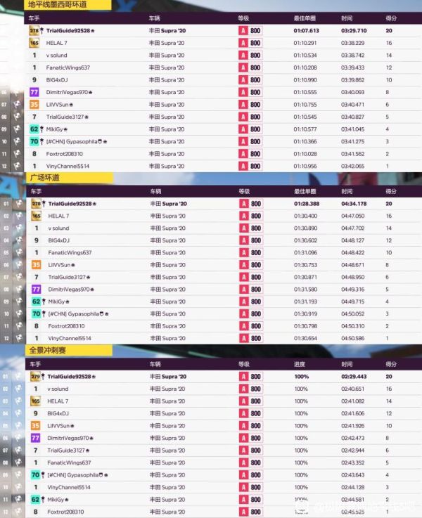 注解:前几个季节赛冷饭热炒,冲刺赛基本第1,2个弯道就可以冲到第一,环道赛不太友好,后几个弯从外切内可以无视红线。另外低分车刹车捉急,不过拉力赛谁走线啊,但凡判断能过飘就飘了。