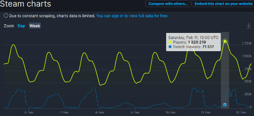 近日,根据SteamDB数据显示,FPS游戏《CSGO》同时在线玩家人数刷新了新的历史记录,在2月11日峰值达到132万0219 名玩家,而之前的最高记录(130万8963人)要追溯到2020年。这款拥有11年历史的经典老牌射击游戏依然热度不减。