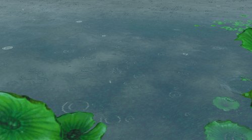 从前,雨水落到湖面时所呈现的效果大同小异,经过优化后,雨水滴落湖面时的涟漪有了更明显的区别,有的短促,有的绵长,荷叶表面的湿润效果也更为逼真。