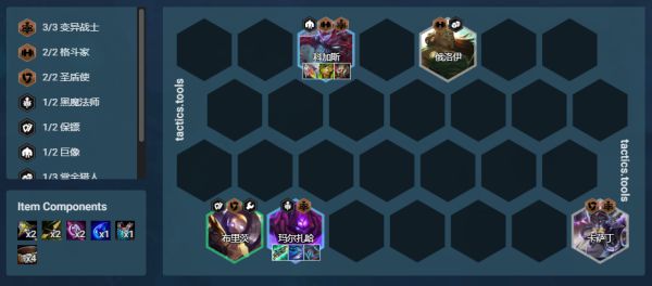海克斯选择:圣盾(要拿转职+1+2没用,得让科加斯吃到这个加成才行)变异(建议拿+1/转职就好,后期上最好的4个变异即可)帝国(建议拿+1/转职的性价比最高,补个斯维因还有2黑法,拿+2也行少个2黑法,多腾出一个格子)护甲镀层(看到无脑拿,拿到就奠定前四基础)不稳定变异(无脑拿,合成加额外属性)DD街区(无脑拿,追3用)前进之路(只刷新在第一轮海克斯选择,可以7级一直D,5阶段自然上8补5变异或者3帝国)