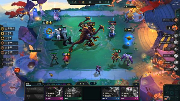 8人口极限(钻石以上玩家看懂即可):要么靠海克斯要么靠铲子,全局想法子去做变异转,这样自己留最好的4个变异加1个变异转出5变异,然后再做一个帝国转给玛尔扎哈,空位子补斯维因,这样是3帝国2黑法,全队都有法强加成,最好卡莎2星后面捡个法爆补输出