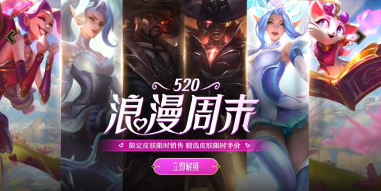 《英雄联盟》于5月20日今日上线“520”全新活动,宣布部分情人节限定皮肤开启限时销售,同时还有11款精选皮肤将开启限时半价销售,一起来看看吧!