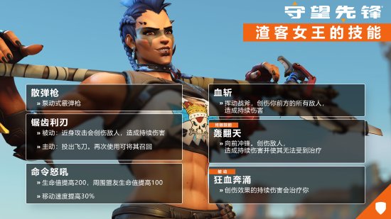 “狂血奔涌”和散弹枪能够在她直冲敌人的同时提供必要的生存能力,帮助她为队友争取空间,从而成为一名出色的重装英雄。