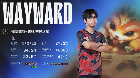 TES击败JDG扳回一城。本局MVP为WAYWARD。
